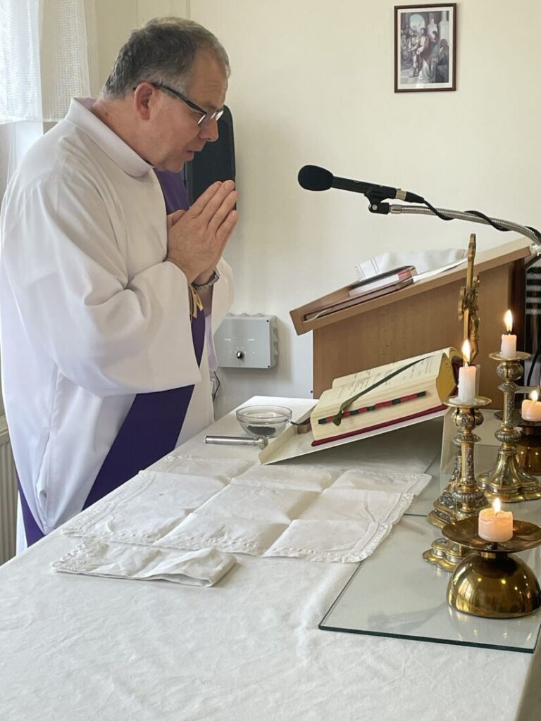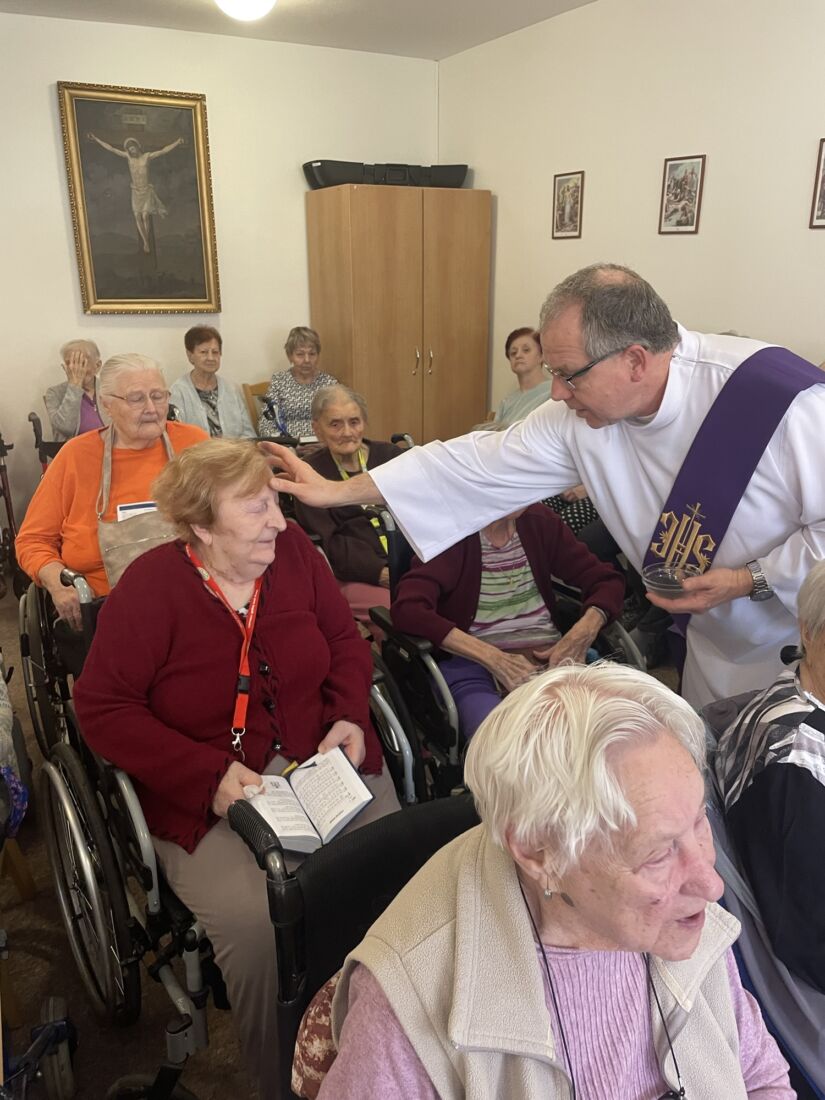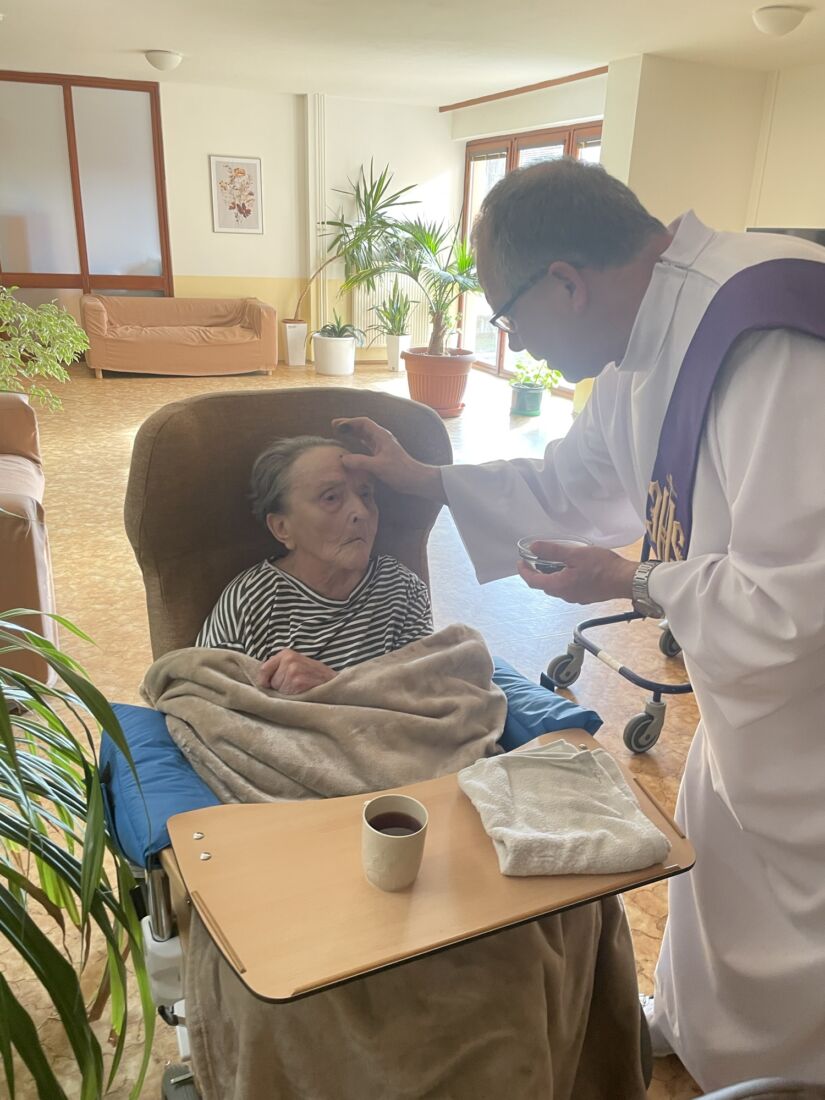 Pan kaplan po bohoslužbě navštívil také klienty na pokojích, kterým udělil popelec a svaté přijímání.