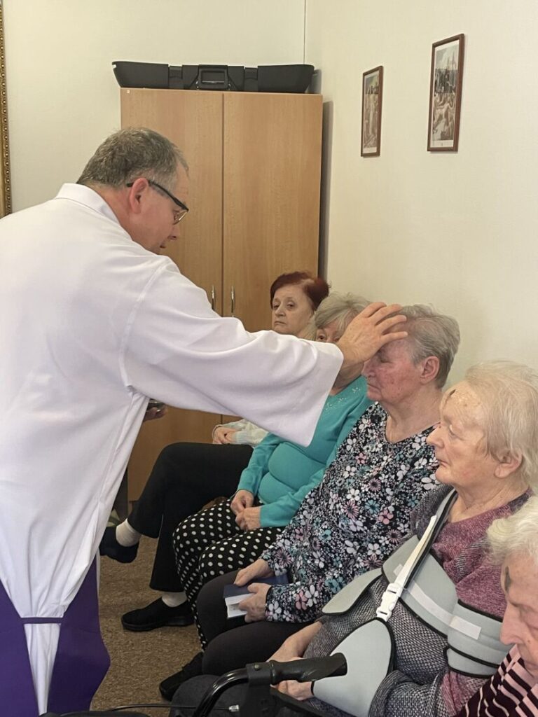 Dnes se klienti našeho domova v hojném počtu zúčastnili bohoslužby u příležitosti Popeleční středy v kapli domova. 🩶